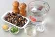 ショウガは皮をむき、せん切りにして水にさらし、水気を切る。