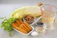白菜の葉はザク切りにして、白い部分はそぎ切りにして水洗いし、水気をきる。