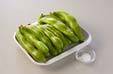 ソラ豆のサヤの汚れをサッと拭き取る。