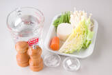 鍋に固形ブイヨン、水を入れ、キャベツ、ニンジン、大根を加えて強火にかける。煮立てば中火にして柔らかくなるまで煮る。