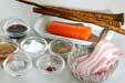 ベーコンから脂が出てくれば、水切りしたゴボウを炒め、ニンジンも加えて炒めあわせる。