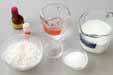 水に色粉を入れて楊子で混ぜ合わせ、白玉の半量に加え練って赤色の白玉にする。