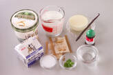 容器にラップをかけて冷蔵庫で2時間位冷やし固める。器に返し、好みのアイスクリームを盛り合わせ、あればミントの葉を飾る。