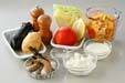 器にキャベツを盛り、エビ、ナス、ジャガイモを盛り合わせ、トマト、レモンを添える。好みでウスターソースやケチャップを掛けて下さい。