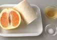 <合わせ甘酢>のグレープフルーツは皮をむき、薄皮もむいて果肉を取り出し、食べやすい大きさに切る。果汁も取り置き、作り置き甘酢と混ぜ合わせる。