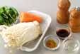 フライパンにサラダ油を中火で熱し、ニンジンをサッと炒める。全体に油がまわればエノキ、シシトウを加えて炒めあわせる。