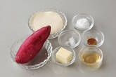 サツマイモは皮ごと水洗いし、ぬれたままラップでフンワリ包み、電子レンジで3分加熱し向きを替えて更に3~4分加熱する。竹串がスッと刺さればOKです。サツマイモが熱い間に、布巾等で包んで皮をむき、ボウルに入れマッシャー等でつぶし<調味料>を混ぜ合わせる。