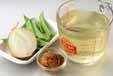 キヌサヤは筋を引き、水洗いして斜め半分に切る。