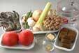 マッシュルーム、シメジ、エビを加え、エビの色が変わるまで炒める。<スープ>を加えて強火にし、煮立てばアクを取り、弱火にして10分煮る。