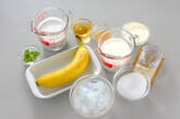 ナタデココはザルに上げる。シロップにはレモン汁を加え混ぜ合わせ、バナナは皮をむいて1cm幅に切りシロップにつける。