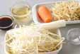 できればモヤシは根を取り、長い場合は食べやすい長さに切り、水に放つ。