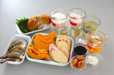 エビ、カボチャ、サツマイモ、レンコン、生シイタケ、梅干しに薄く小麦粉をからめる。<衣>をサッと通し、170℃の揚げ油でサクッと揚げ、油を切る。梅干しは<衣>を通し大葉で包んで、大葉ごともう1度<衣>を通して揚げ油に入れる。