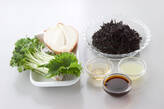 生ひじきはサッと水洗いし、熱湯に20秒位入れ、ザルに上げ長いものは食べやすく切る。(乾燥ひじきの場合はたっぷりの水につけて柔らかく戻し、ザルに上げ、流水できれいに洗い、水気をしっかりきる。)