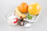 グレープフルーツ、オレンジは皮を包丁でむき、薄皮もむく。