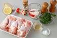 鶏手羽元は水洗いして水気を拭き取り、骨に添って切り込みを入れ、<下味>をからめて20分置く。