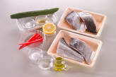 キュウリは両端を切り落として薄い輪切りにし、塩少々でもむ。水気が出てくれば水でサッと洗って水気を絞り、作り置き甘酢をからめる。