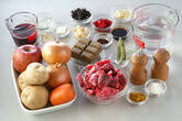 フライパンにバター10g、サラダ油大1を熱し、下味を付けた牛肉を炒める。赤ワインを加え、煮立てば煮込み鍋に入れる。