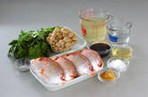 鍋にだし汁、しょうゆ以外の<調味料>を入れて火にかけ、煮立ったらショウガ、水気を拭き取った連子鯛の表側を上にして並べ入れる。