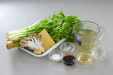 水菜、セリは水洗いして、根元を切り落として3~4cmの長さに切る。