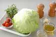 レタスは芯をくり抜き4~8つに切る。冷水につけてパリッとさせてザルに上げ、しっかり水気を切る。
