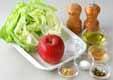 器に水気をきったリンゴとレタスを盛り合わせ、よく混ぜ合わせた<ドレッシング>をかける。