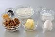 2の生地を10~12個に丸め、卵白を通して刻んだクルミをからめ、オーブンシートを敷いた天板に間