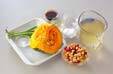 最後にミックスビーンズを加え、更に3~4分煮て器に盛り、サヤインゲンを散らす。