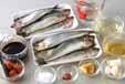 イワシは頭と尾を切り落とし、ワタを出して塩水で洗い、水気をきる。