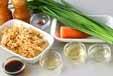 鍋にたっぷりの熱湯を沸かし、ニンジン、ニラ(気になる場合は切り干し大根も)をサッとゆで、ザルに上げて水気を切る。