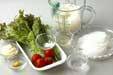 <マヨソース>を混ぜ合わせ、1のイカを覆うようにのせ、サヤインゲン、プチトマトを飾る。お好みでしょうゆやポン酢を掛ける。