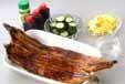 好みで粉山椒をかけ、いただく。小皿にお漬け物を盛り合わせて添える。