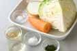 キャベツは洗って、4cm長さのせん切りにする。