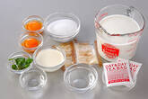 2に1を加えてよく混ぜ合わせ、鍋に戻して木ベラで混ぜながら、煮立てない様に気をつけて、トロミがつくまで火にかける。