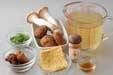 シイタケは石づきを切り落とし、サッと水洗いし水気を拭き取る。軸と笠に切り分け軸は縦に裂き、笠は薄切りにする。