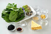 ほうれん草は水洗いし、熱湯でサッとゆでる。水に取って粗熱が取れれば水気を絞る。根元を少し切り落とし、3cmの長さに切る。