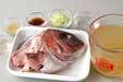 鍋に水を入れ中火にかけ、煮立てばタイを入れ、再び煮立ってくれば<調味料>を加える。