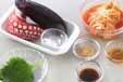 大葉は軸を切り落とし、縦半分に切ってせん切りにし、水に放って水気を絞る。