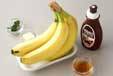 バナナは皮をむいて半分の長さに切り、更に縦半分に切る。