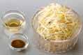 豆モヤシは根を取ってたっぷりの水につけ、パリッとさせる。