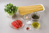 たっぷりの熱湯に塩を加え、沸騰している中にスパゲティを入れる。くっつかないように時々菜ばしで混ぜ、沸騰している状態で、袋に書いてある指示時間より少し短めでお湯から上げる。(アルデンテ・・少し硬めが美味しいです)