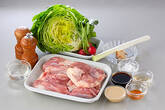 器にレタス、ラディッシュ、鶏肉を盛り付け、<ピリ辛ゴマだれ>を掛けていただく。