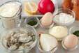 ゆで卵はみじん切りにし、他の材料と混ぜ合わせ<タルタルソース>を作る。玉ネギがピリピリ辛く感じる場合は、布巾に包んでもみ洗いし、絞って使えばマイルドに。