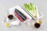 サニーレタスは水洗いして、細切りにして水気をしっかり絞っておく。