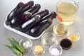 ナスはガクの周りに切り込みを入れて落とし、火が通りやすいように縦に切り込みを入れ、水に放ってアクを抜く。