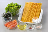 <ポイント> 普通スパゲティをゆでる時は、スパゲティ重量の10%の塩を入れたかなりしょっぱい熱湯でゆでますが、今回はタラコの塩分があるので、ゆでる塩は少なくなっています。