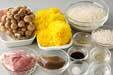 炊飯器に洗ったお米と<調味料>を入れ、分量線までの水を加える。