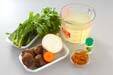 菊菜は根元の固い茎を切り落とし、水洗いし、1cm幅に切る。