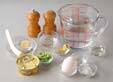 <卵液>の片栗粉を水で溶き、卵と混ぜ合わせる。