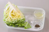 ビニール袋にキャベツ、塩を入れ袋ごともみ、10分置く。