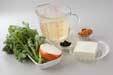 豆腐を加え、煮立つ直前にワカメ、菊菜を加える。再び煮立つ直前に火を止め、器によそう。